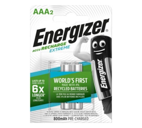 Инновационные аккумуляторы Energizer Accu Recharge Extreme экологически безопасны, не имеют протечек и созданы с использованием переработанных перезаряжаемых батарей.