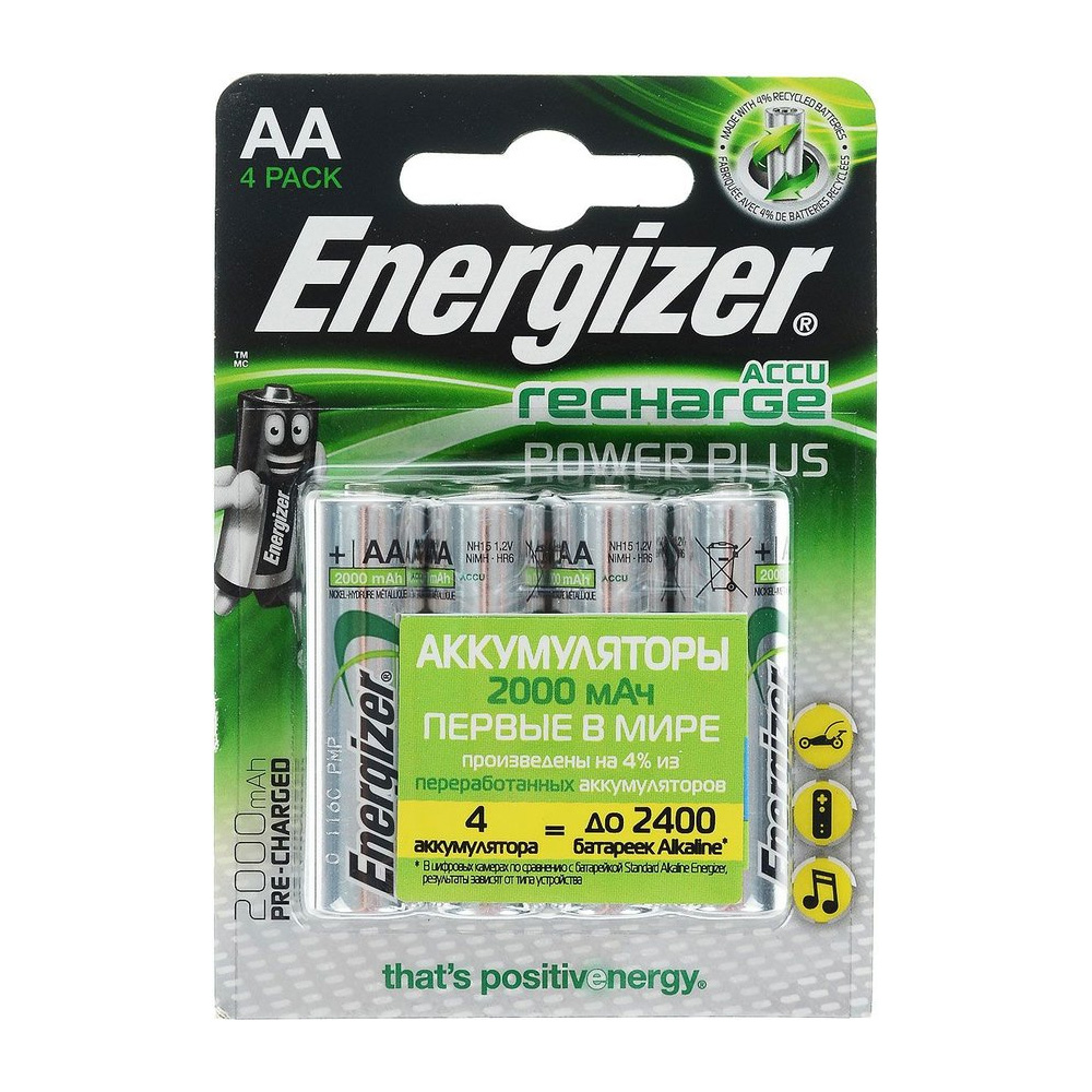 Аккумуляторные батареи Energizer Recharge Power Plus не только экологически безопасны, но и экономичны, что является идеальным выбором и экономией средств в долгосрочной перспективе,- в отличии от простых или алкалиновых батареек, Вы сможете использовать аккумуляторы множество раз.