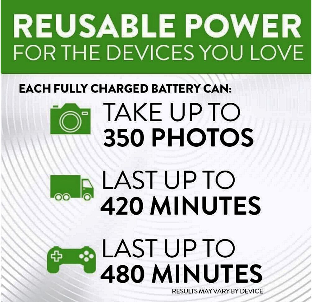 Аккумуляторные батареи Energizer Recharge Power Plus не только экологически безопасны, но и экономичны, что является идеальным выбором и экономией средств в долгосрочной перспективе,- в отличии от простых или алкалиновых батареек, Вы сможете использовать аккумуляторы множество раз.