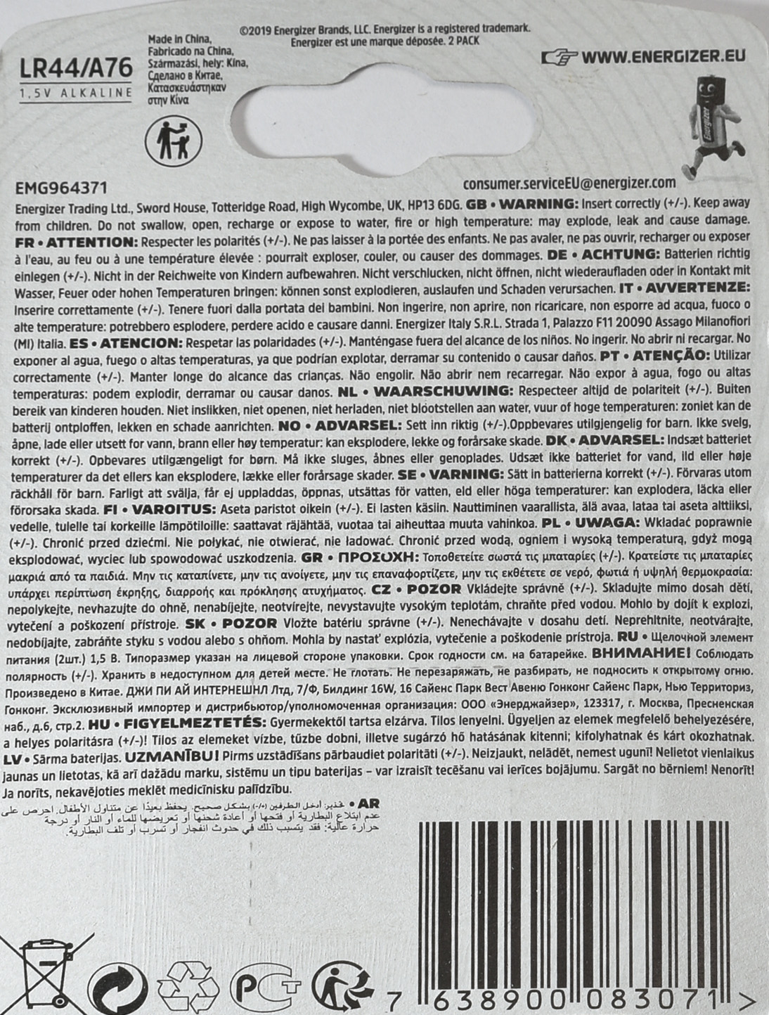 Дисковые батарейки Energizer защищены от коррозии, что предотвращает возможные протечки, после выпуска, партия проходит различные тесты, на изменение температур использования от минимально низких до максимально высоких, испытания на вибрацию, короткое замыкание, раздавливание, принудите