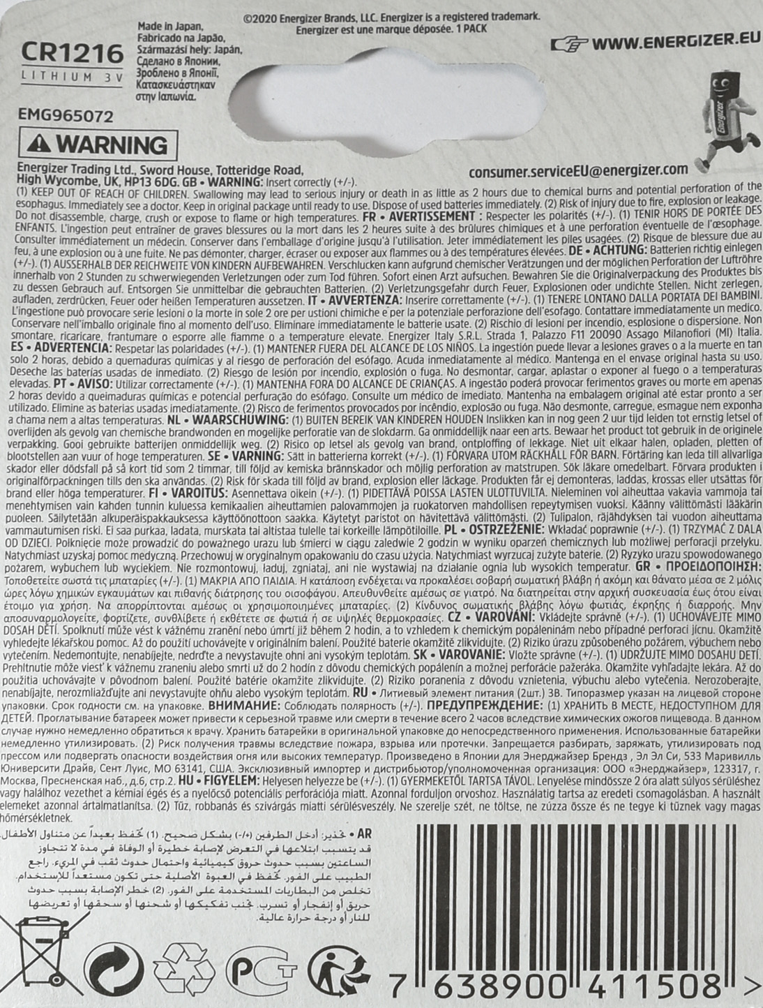 Дисковые батарейки Energizer защищены от коррозии, что предотвращает возможные протечки, после выпуска, партия проходит различные тесты, на изменение температур использования от минимально низких до максимально высоких, испытания на вибрацию, короткое замыкание, раздавливание, принудите
