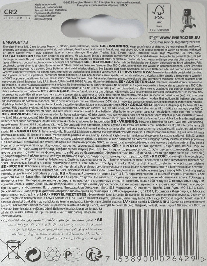 Литиевые элементы питания Energizer имеют низкий уровень саморазряда и длительный срок хранения.