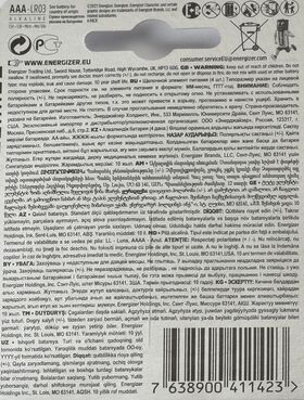 ENERGIZER MAX обладают высокой ёмкостью и надежностью, держат заряд более 10 лет. После разрядки батареи гарантированно не протекают, и при правильной утилизации элементов питания, не приносят вред окружающей среде.