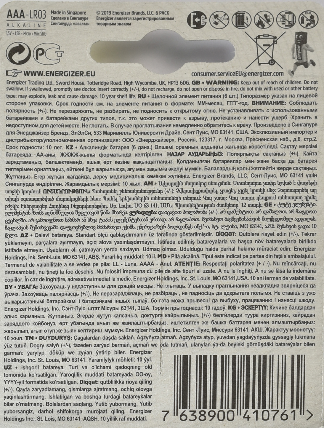 ENERGIZER MAX обладают высокой ёмкостью и надежностью, держат заряд более 10 лет. После разрядки батареи гарантированно не протекают, и при правильной утилизации элементов питания, не приносят вред окружающей среде.