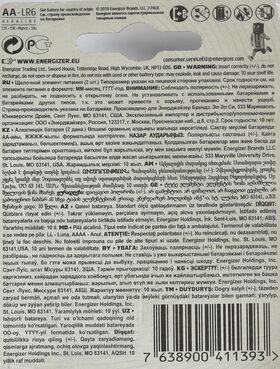 ENERGIZER MAX обладают высокой ёмкостью и надежностью, держат заряд более 10 лет. После разрядки батареи гарантированно не протекают, и при правильной утилизации элементов питания, не приносят вред окружающей среде.