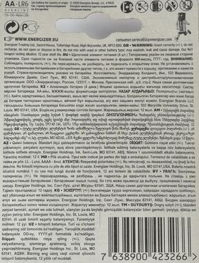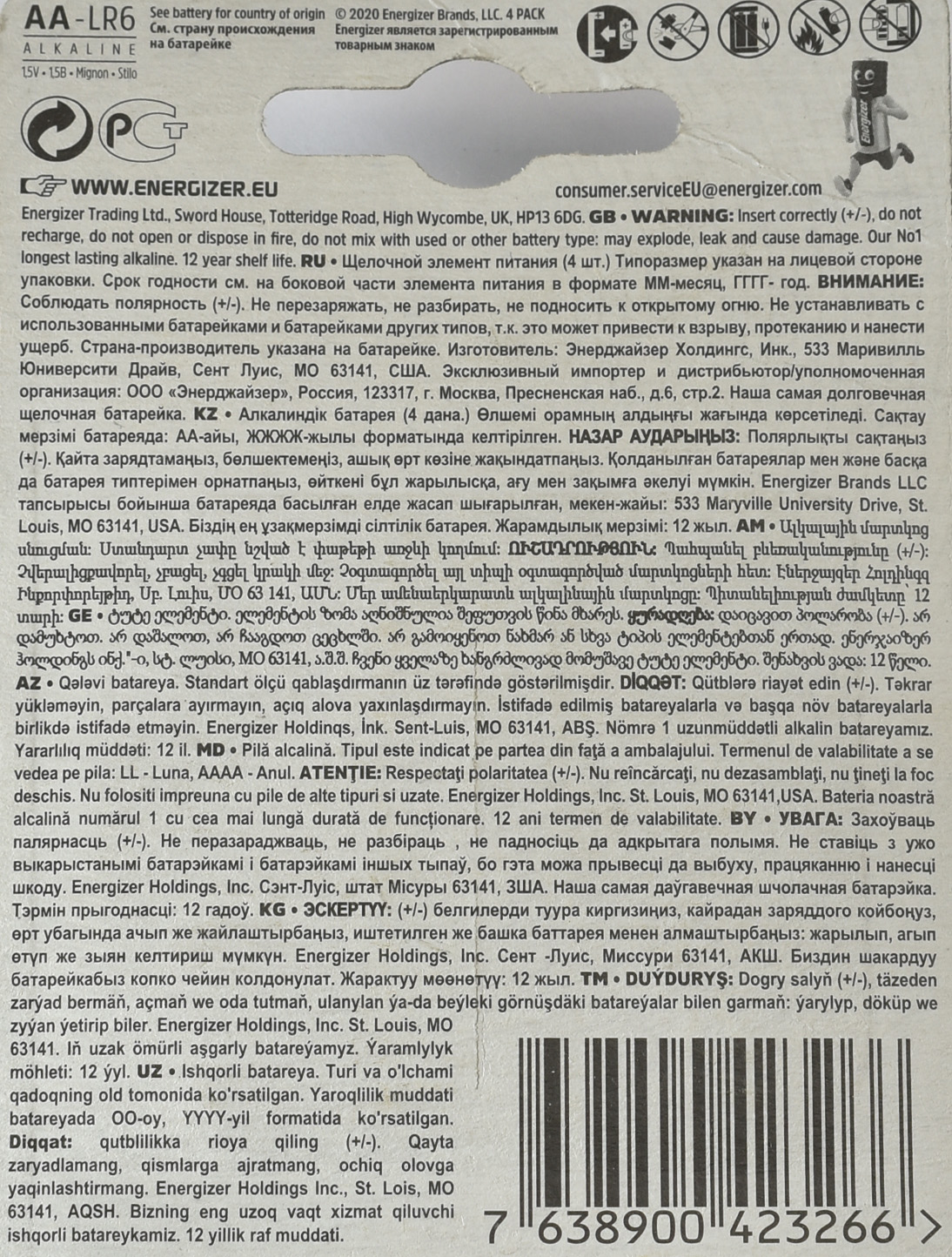 Energizer Max Plus упакованы в прочный, эргономичный блистер, вмещающий 4 элемента питания типа АА.